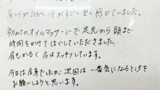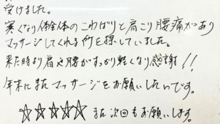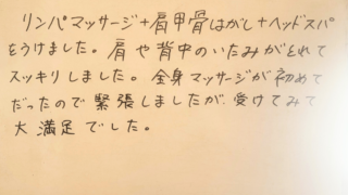 【お客様の声】鹿児島市で全身マッサージデビュー!肩・背中の痛みがとれて大満足のスッキリ体験