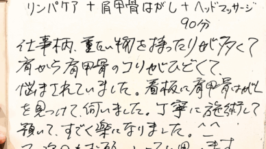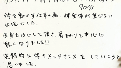 お客様のお声 【お客様のお声】鹿児島市で悩みの肩こりを解消!本格的な肩甲骨はがしともみほぐし
