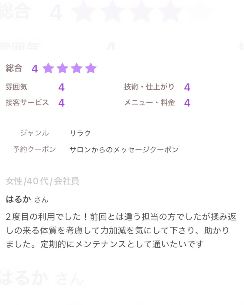 メニュー通り、解してもらいとてもスッキリしました。