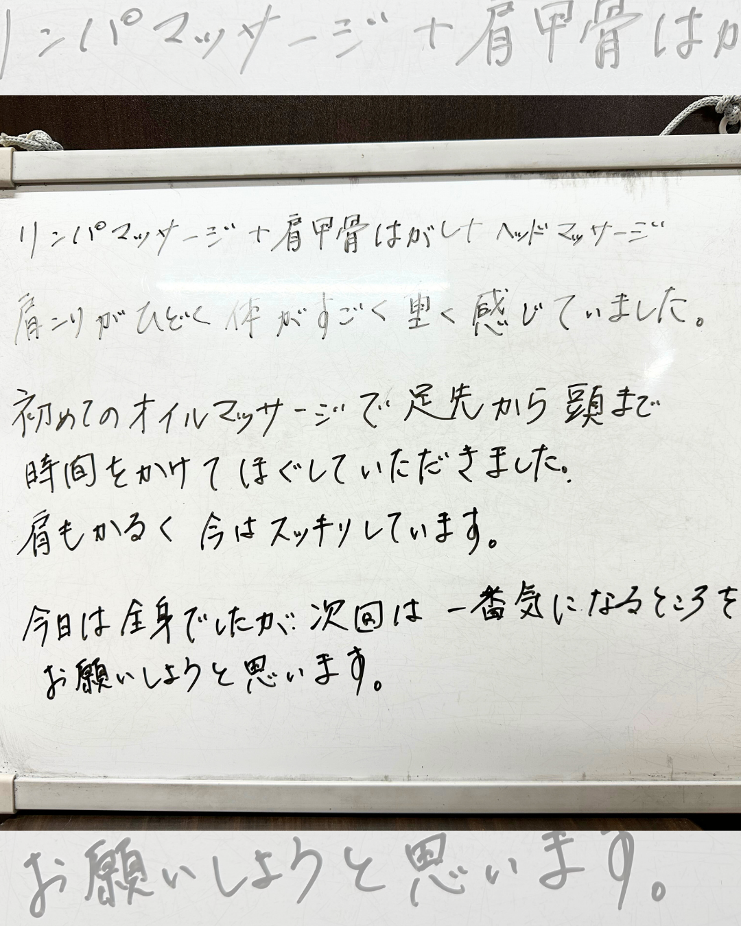施術後に、感想文記入のお願いをしております。ご協力お願い致します。