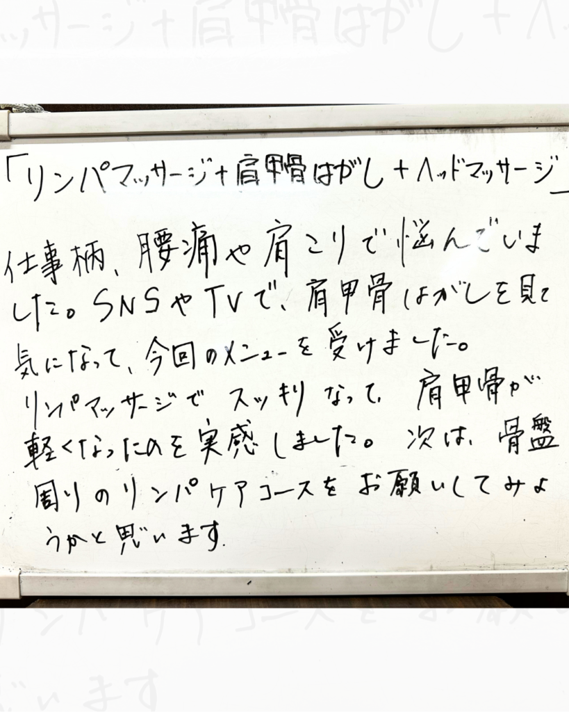 リンパケア+肩甲骨はがし+ヘッドマッサージ 90分