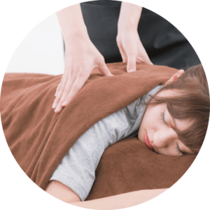 体が柔らかくなる程度の強さで行います。セルフケア指導まで