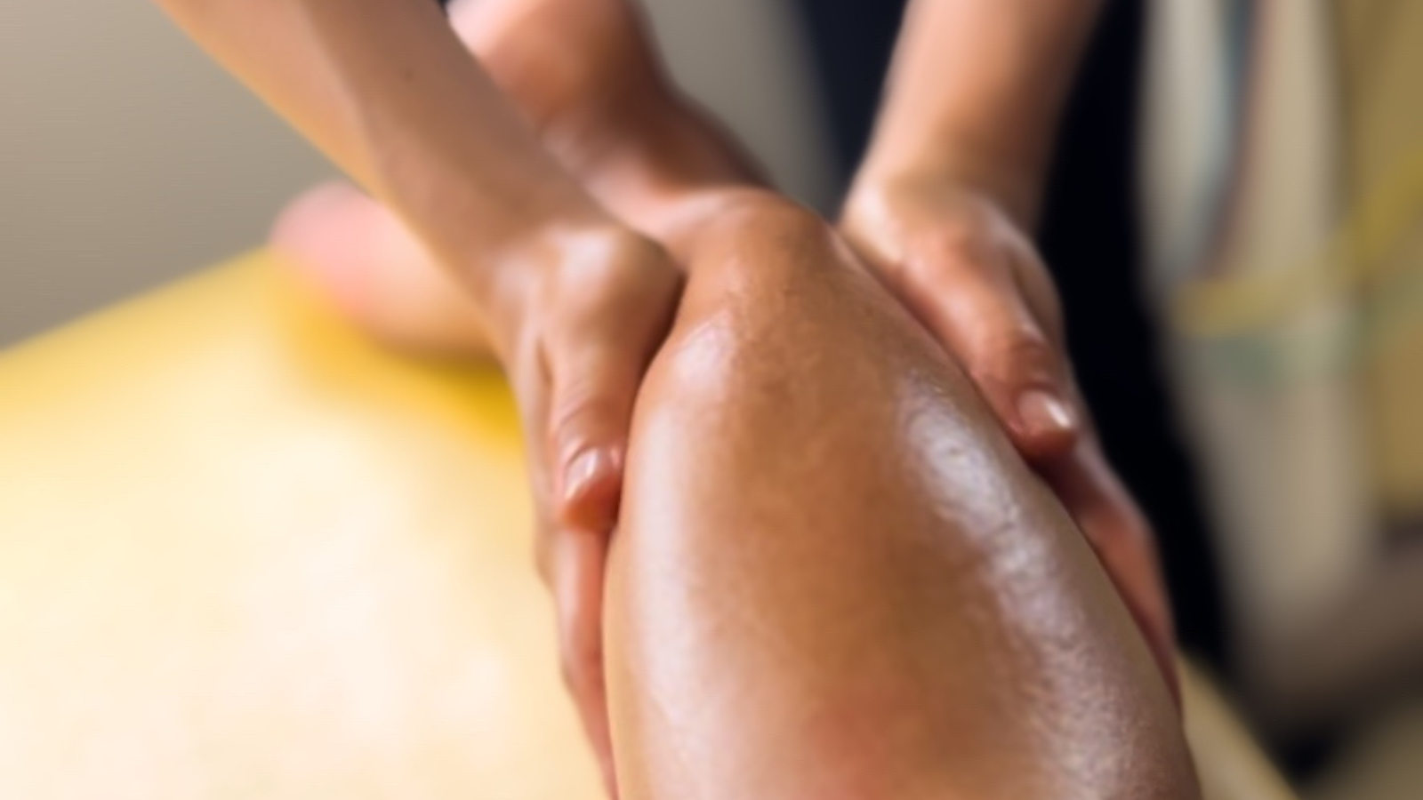 足首から膝裏のくぼんでいる部分に向かって、優しく圧をかけながらマッサージします。