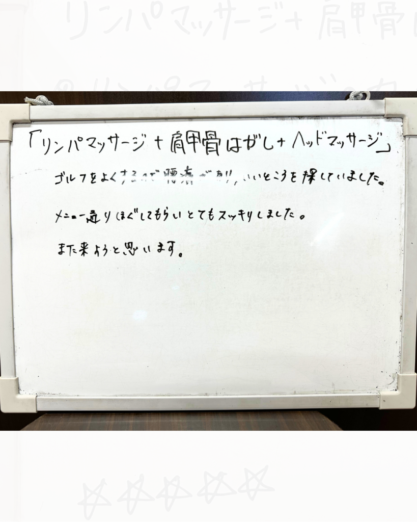 メニュー通り、解してもらいとてもスッキリしました。