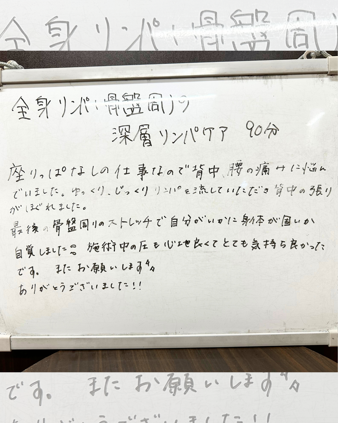 全身リンパ+骨盤周りの深層リンパケア 90分コース
