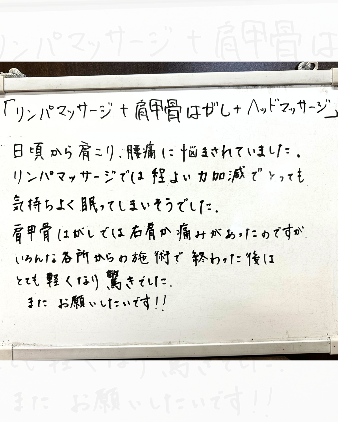 リンパケア+肩甲骨はがし+ヘッドマッサージ 90分コース