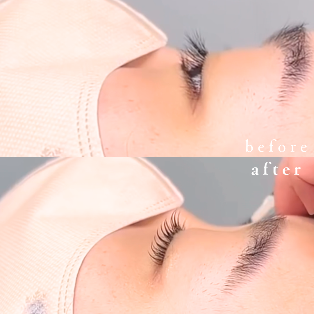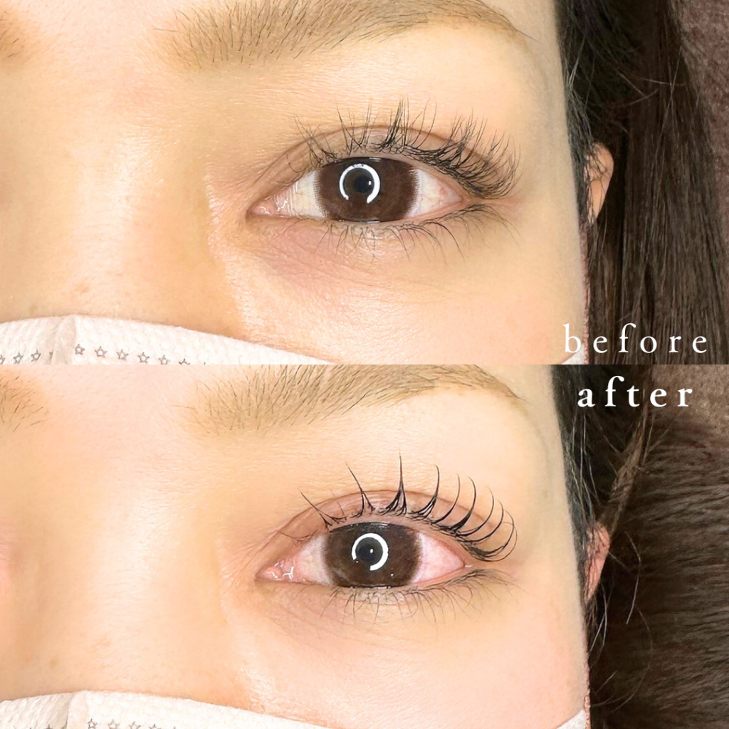 まつ毛の根元からまっすぐ立ち上げるデザイン(Lカール)や、毛先に丸みをつけたデザイン(Cカール)、目尻だけを流すデザインなど、目の形に合わせて調整が可能です。